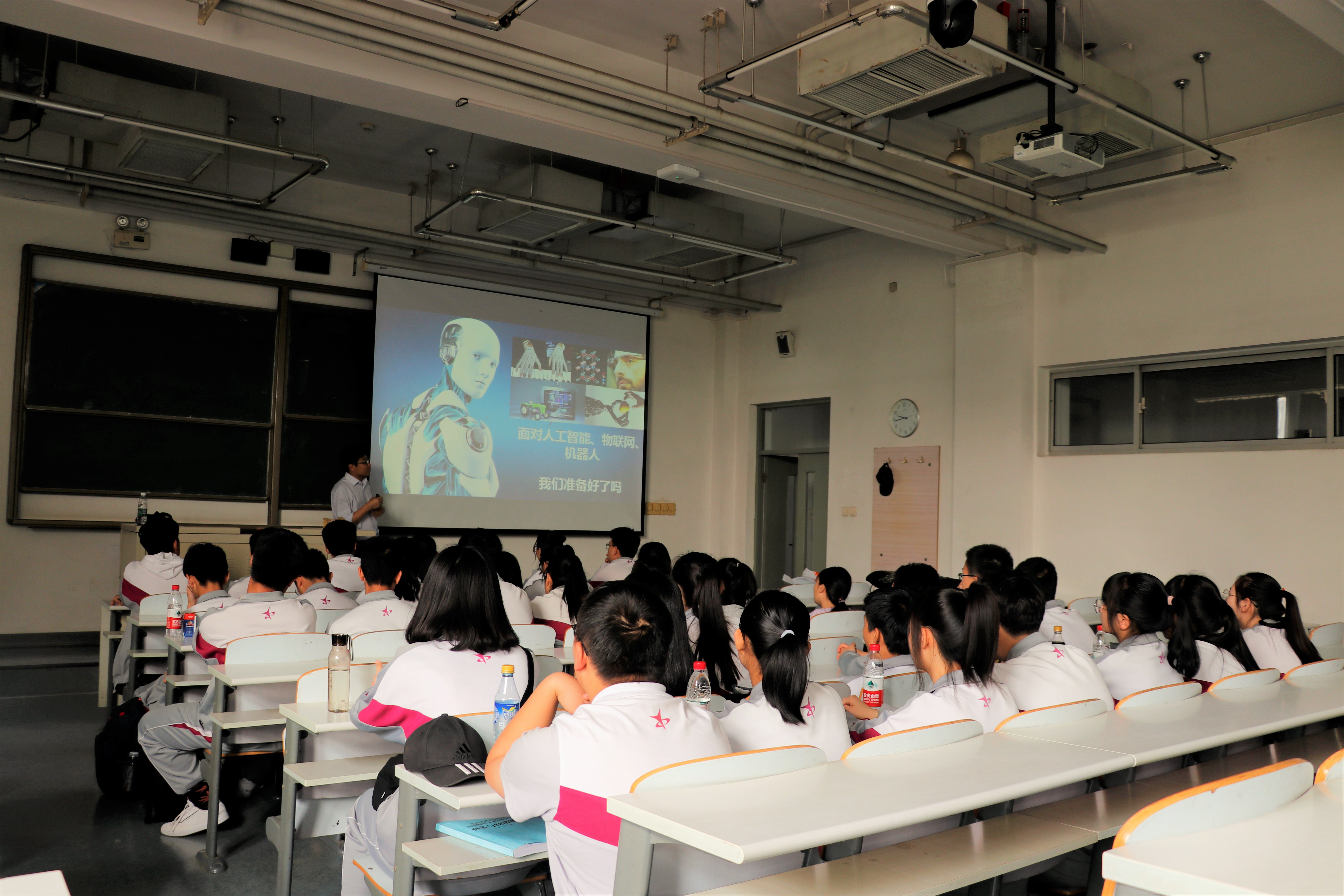 活动分为5个环节,首先,由电子工程系副主任邢志强教授为一中师生开展《智能机器人发展史》的讲座,并指导学生开展科技制作。第二环节为延庆一中校友,17级研究生吕恒宇同学为师生分享了自己的大学生活。第三环节,一中师生共同观看了正规滚球app平台官网开放日展板,为提前了解专业应对新高考改革,提前做准备。第四环节,在学生志愿者的带领下,参观校园并在毓秀食堂就餐,感受大学生活。最后一个环节,在师生的讲解下,参观数字媒体和光通信实验室,进一步了解专业学习。