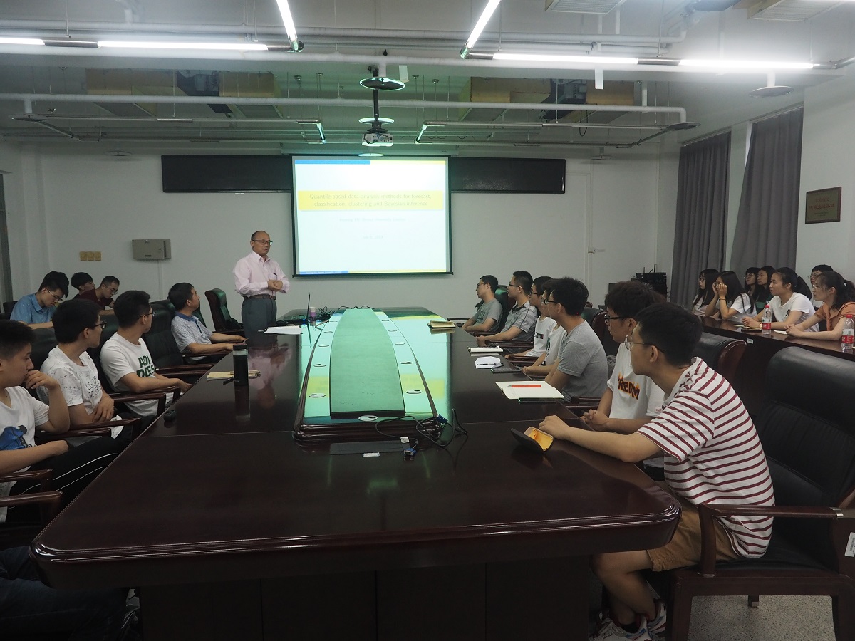 7月5日,应正规滚球app平台官网邀请,英国布鲁内尔大学教授虞克明为学院师生作了题为《基于分位数的预测、分类、聚类和贝叶斯推理数据分析方法》的学术报告。报告由正规滚球app平台官网院长马礼教授主持,学院部分教师及研究生参会。