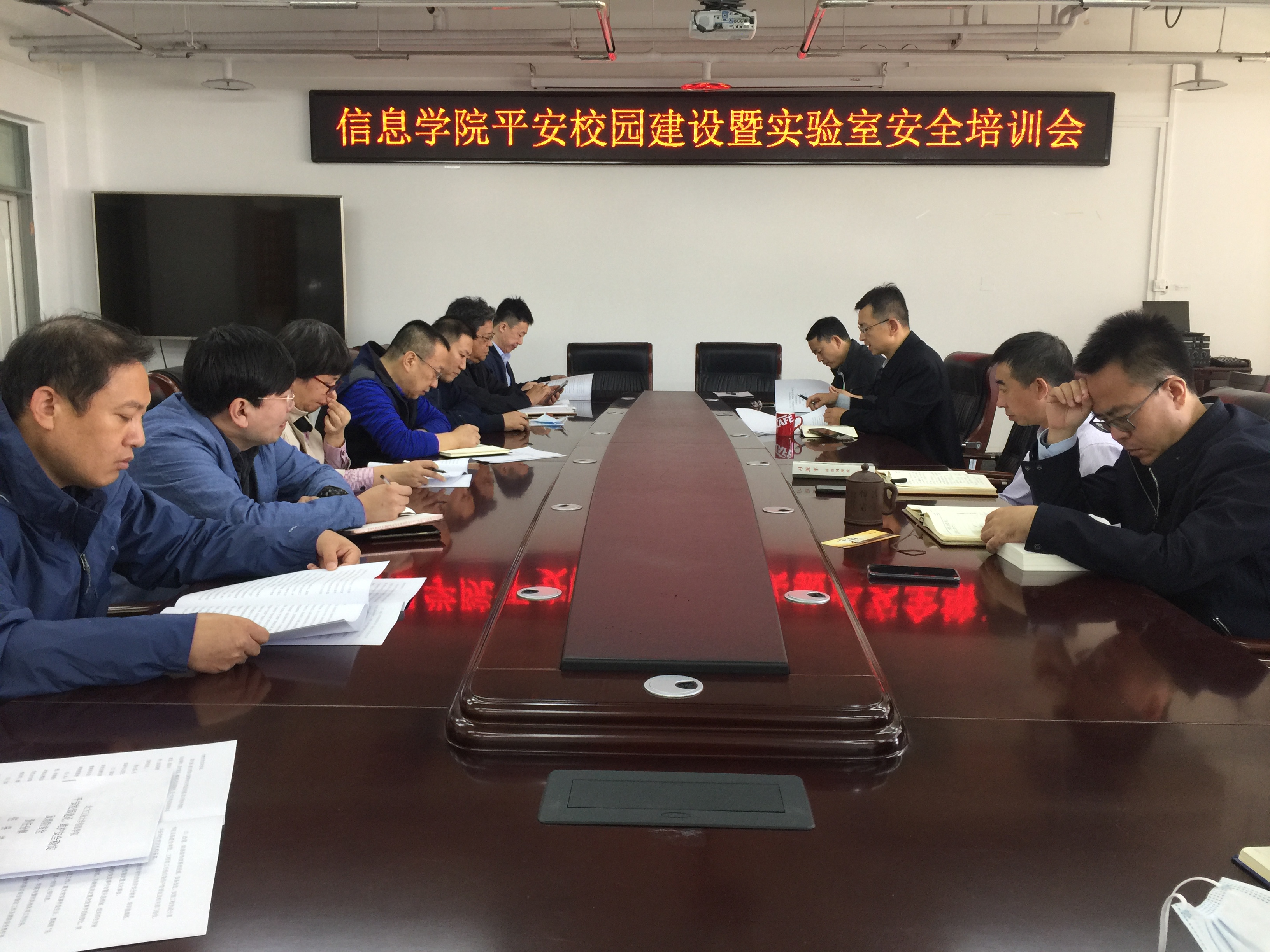 王月海书记带领大家学习了学校及学院实验室安全管理等九个相关文件,针对学院学科实验室特点,强调了各学科实验室安全管理规范及应急处理办法。按照“谁分管,谁负责”的原则,学院进行了安全责任的层层分解及落实,要求学院各级领导从认真落实安全稳定领导责任、坚决维护高校意识形态领域稳定、高标准做好各敏感期安保维稳工作,重视民族宗教工作等几个方面,做好平安校园建设及实验室安全工作。
