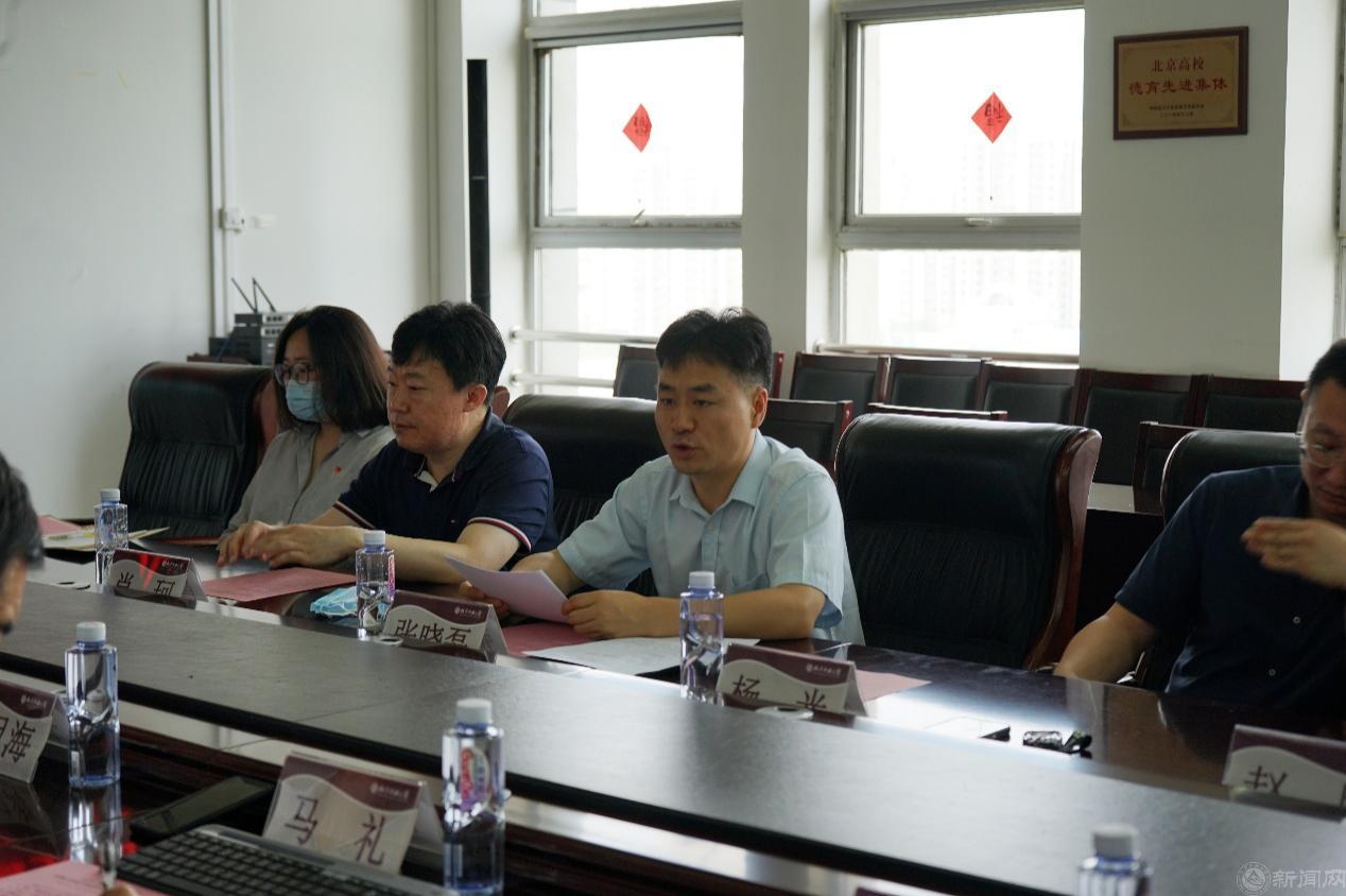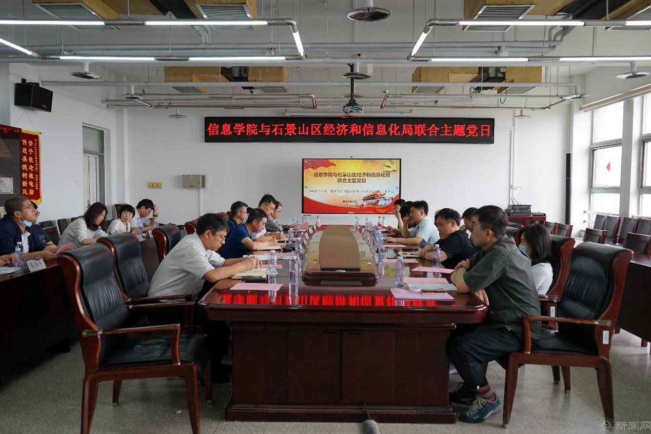 6月1日,石景山区经济和信息化局与滚球正规滚球app平台官网开展联合主题党日活动。经信局党组副书记、局长张晓磊,副局长杨光、肖珂,正规滚球app平台官网党委书记王月海,院长马礼,党委副书记陈卫,副院长段建勇、鲁远耀,正规滚球app平台官网党委理论学习中心组成员、教师代表等双方20多名党员干部参加活动。同时,本次活动也是正规滚球app平台官网党委理论学习中心组(扩大)的一次集体学习,校党委宣传部副部长、校党委理论学习中心组巡听工作组成员陈国秀应邀到会指导。王月海主持此次主题党日活动。
