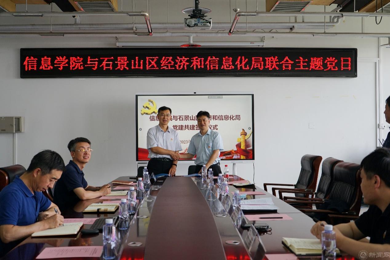 王月海指出,双方联合开展此次主题党日活动,学习贯彻党的二十大精神,共同传达学习贯彻习近平新时代中国特色社会主义思想主题教育内容,签订结对共建协议,这是一件非常有意义的事。他强调,双方结对共建之后要经常性地互通有无,进一步突出党建引领,推动双方党建工作与业务工作相互融合、相互促进、相互提高。马礼表示,希望学院与区经信局合作做出实际贡献,促进京西创新发展,服务首都高质量发展。