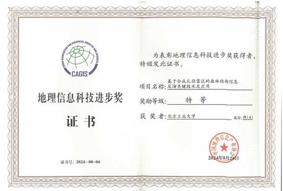 近日,2024年地理信息科技进步奖颁奖仪式在云南昆明举行。滚球正规滚球app平台官网申文杰老师作为成员申报的项目成果“基于合成孔径雷达的森林结构信息反演关键技术及应用”获评科技进步奖特等奖。