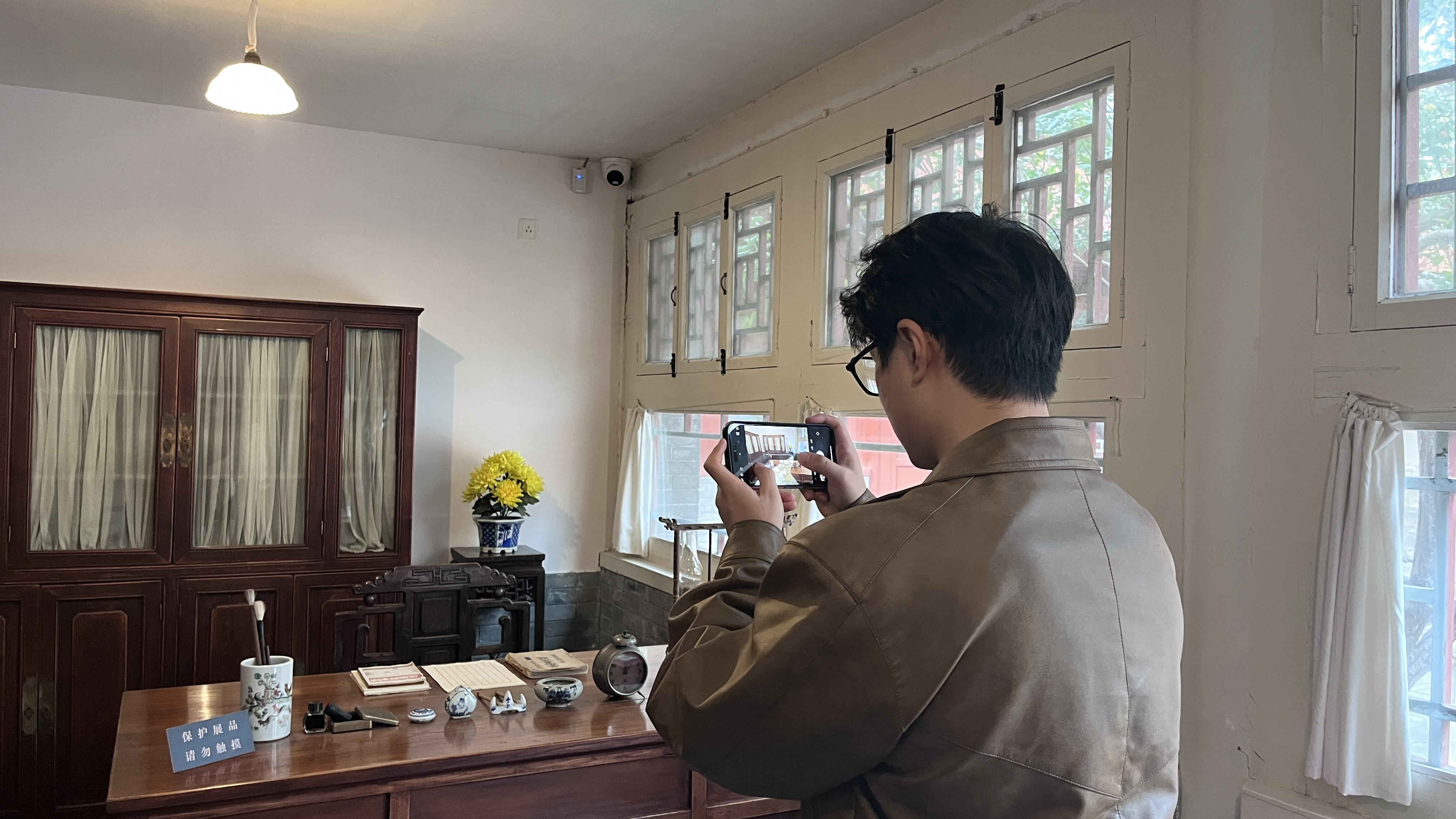 故居的卧室和书房还保留着李大钊同志生活的模样,同行前往的同学参观完之后不禁感慨“没想到当时李大钊同志的生活条件如此朴素!”,没有辉煌的陈设,也没有绚丽的灯光,除了生活学习日常用品,没有任何玩乐的摆设。