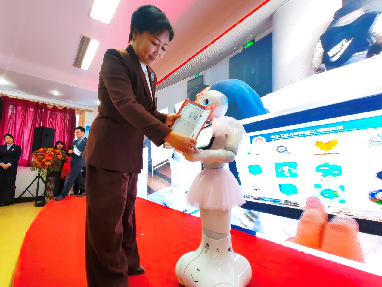 活动当天,正规滚球app平台官网党委副书记陈卫为“吉祥”老师送出寄语,期待她能够积极工作,为孩子们提供情感交互与陪伴,让孩子们的世界将变得更加丰富多彩。小飞象训练发展中心理事长赵星郑重地为“吉祥”老师颁发了聘书,标志着这位智慧机器人将正式肩负起孤独症儿童科技康复的重任。活动中,这位智慧与温情并存的机器人“吉祥”老师,不仅与“星宝”们共同演绎了《小猪吃的饱饱》、《元日》、《阳光彩虹小白马》等节目,生动展示了科技与教育的深度融合,更体现了实验室在科技创新与人文关怀方面的双重追求。活动受到《北京日报》、《北京青年报》、石景山电视台、石景山融媒体等媒体报导。